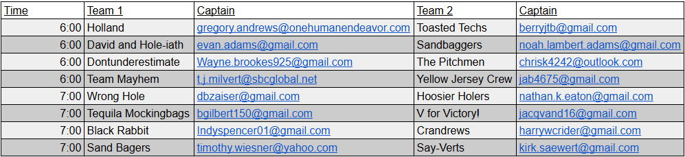 Cornhole League Week 1